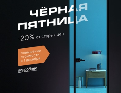 Друзья, встречайте «Чёрную пятницу»! Самые актуальные скидки года с 7 по 25 ноября: −20% на дверной комплект, стеновые и наддверные панели. Акция распространяется на полотно, деревянный или скрытый короб, фигурные и прямые наличники, карнизы, доборы и соединительные элементы.