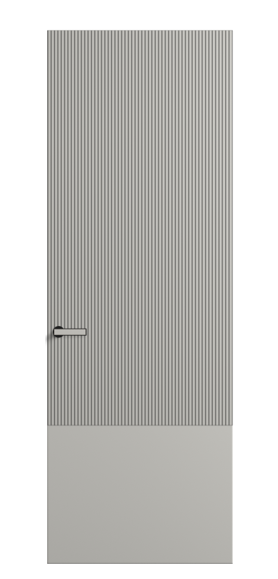 Это полотна с рельефной фрезеровкой. Этот прием делает интерьер объемным, тактильным, вносит интересную текстуру и создает современный образ. Волнистый рельеф может быть выполнен по ламелям из массива дуба в древесных матовых отделках, либо исполнен по натуральному и экологически безопасному материалу — ХДФ, покрытому гладкой эмалью актуальных оттенков.