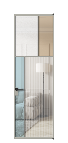 Лаконичный разделительный профиль внутренней раскладки полотна обеспечивает эстетический внешний вид конструкции и идеальную стыковку вставок из стекла.