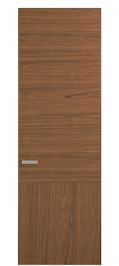 Полотно Rift в скрытом алюминиевом коробе становится полноценным элементом декора. В коллекции представлено 9 моделей дверей в высоте до 3 метров. Рисунок раскладки шпона варьируется от простого до сложного. «Рубашка» для каждого полотна подбирается вручную по цвету, текстуре и фактуре.