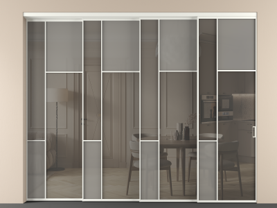 Перегородка Мозаик внутри проёма 4 створки с синхронным механизмом
